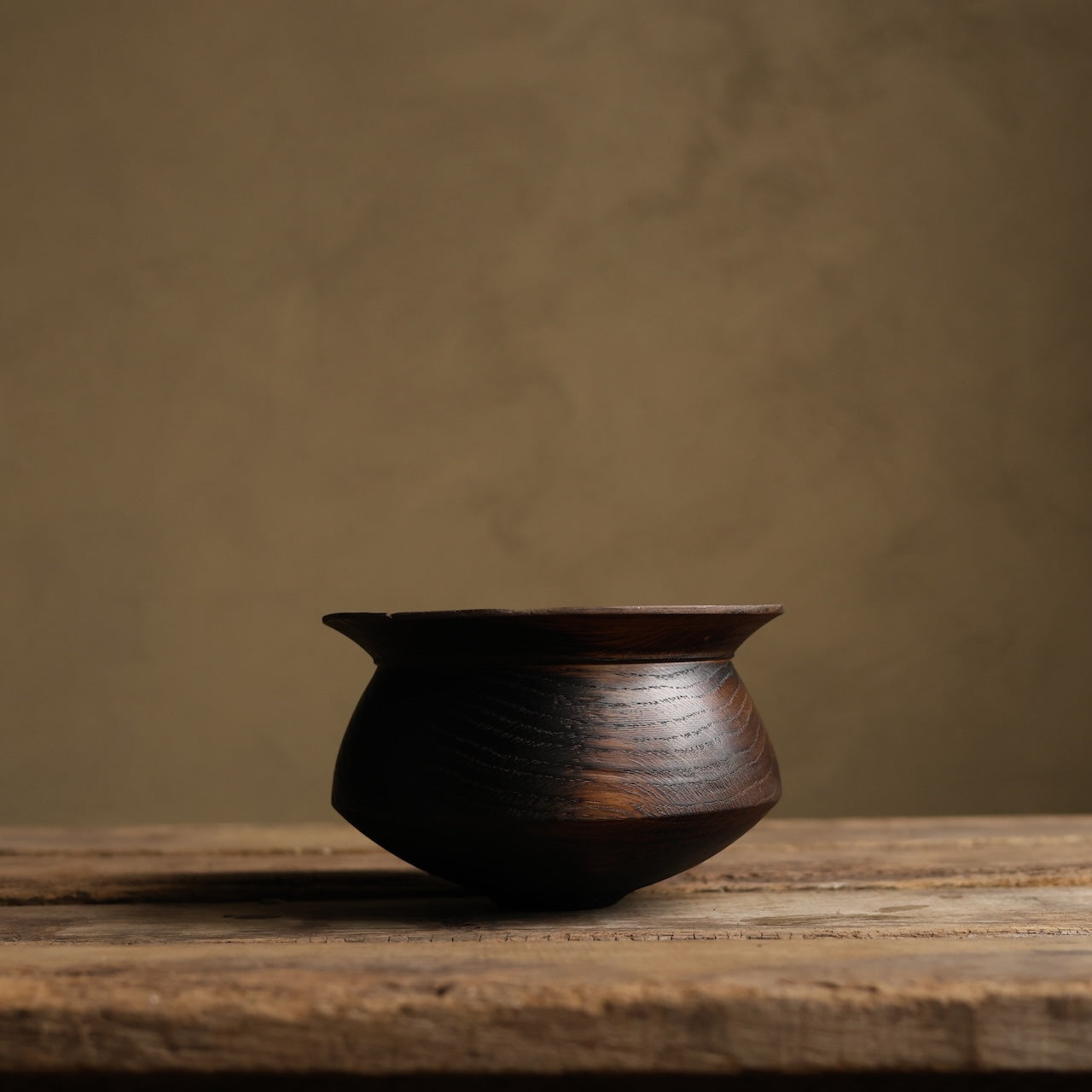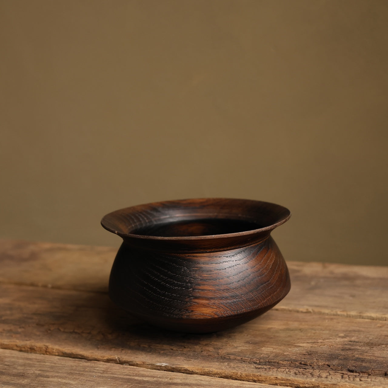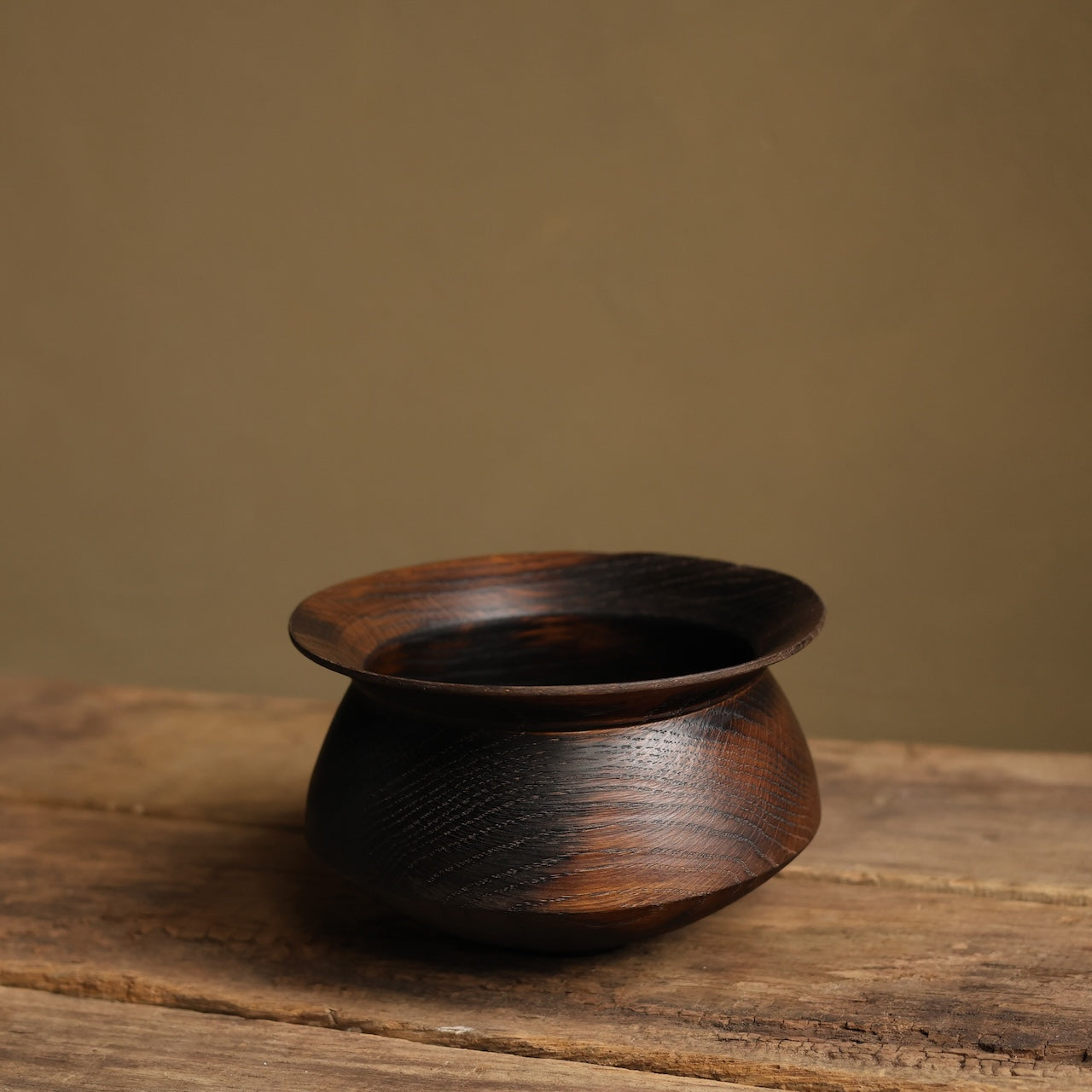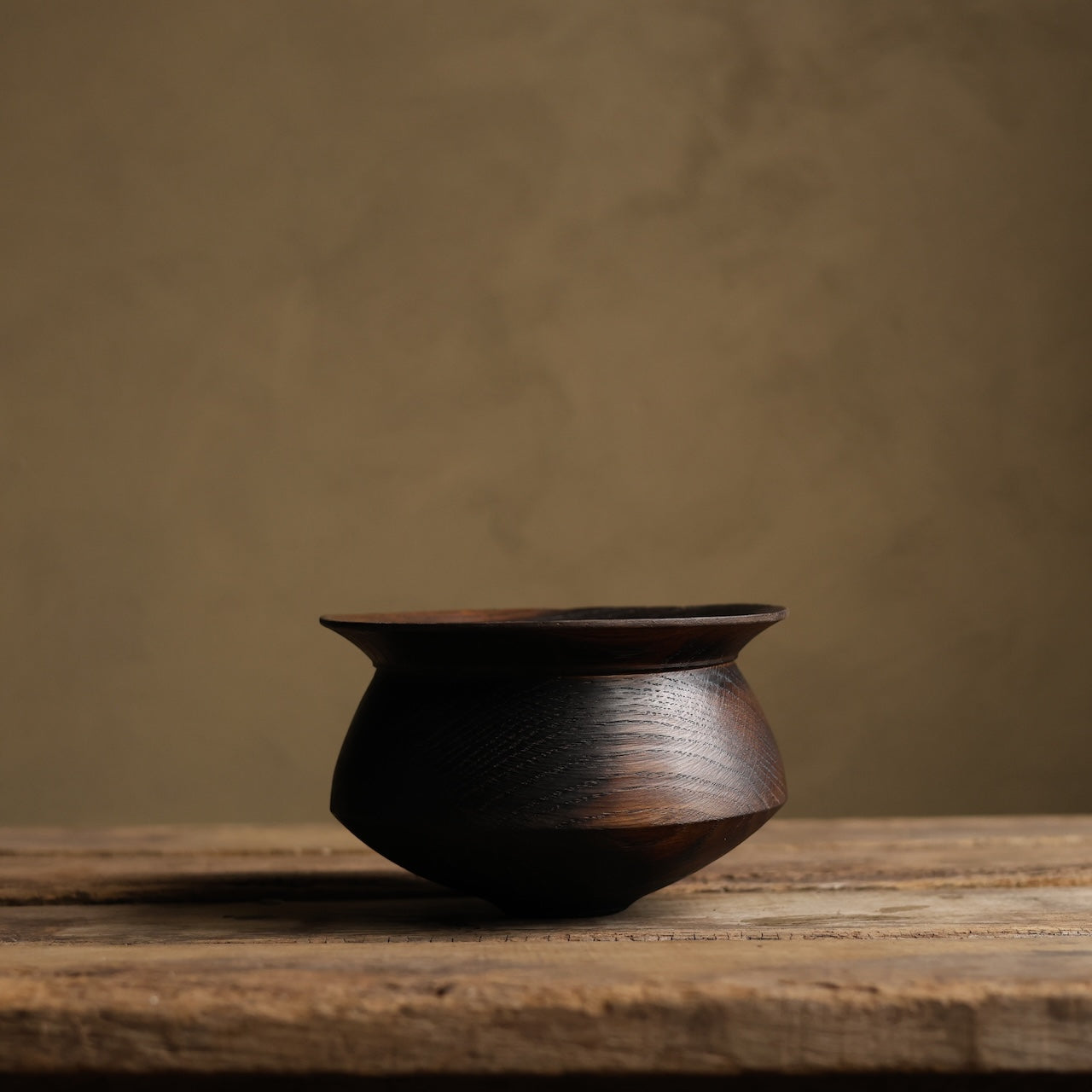 Patinated Oak vessel treated with lime and a touch of fire before coating with danish oil and wax and then burnished with a stiff brush
