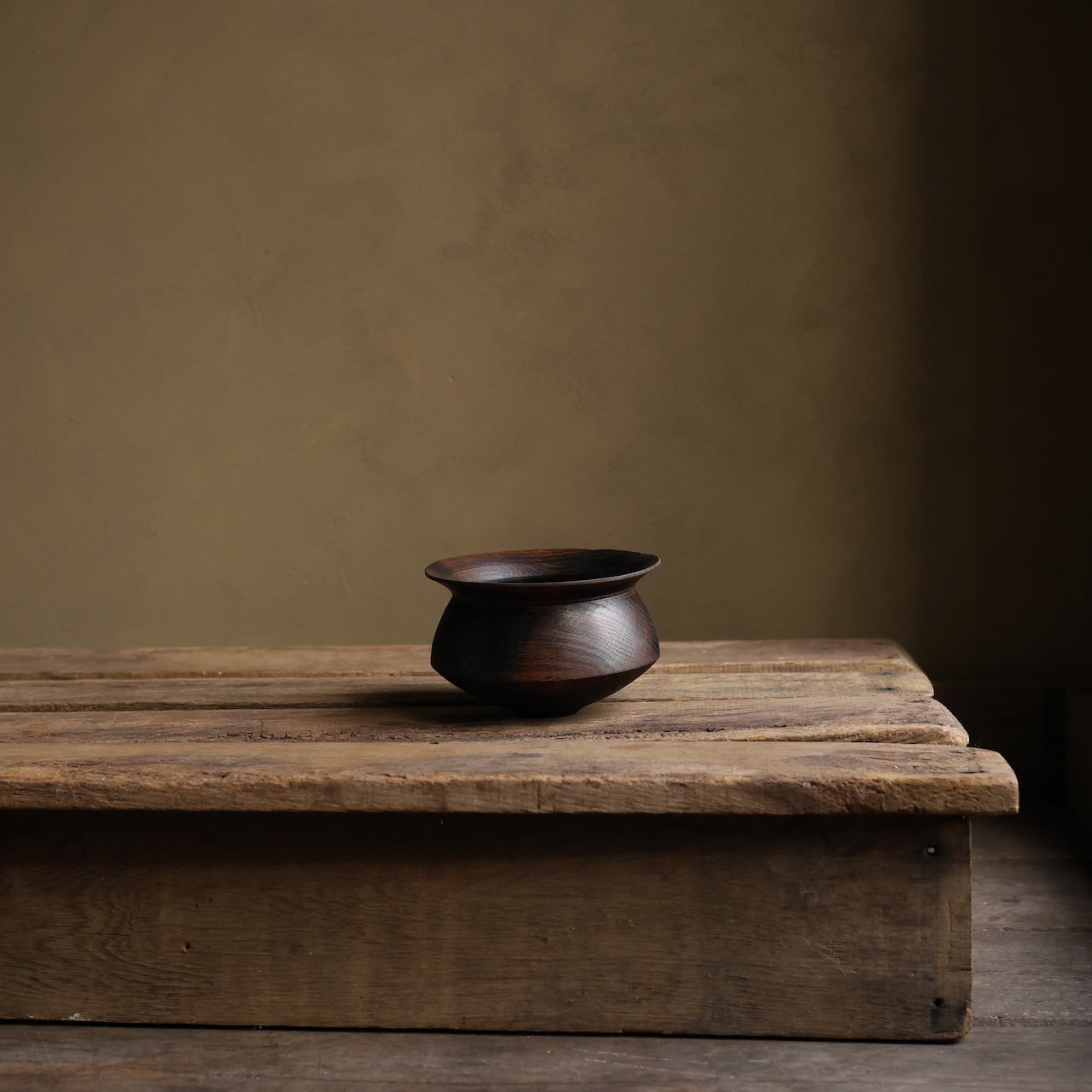 A form that takes inspiration from an Etruscan Urn we came across during our research and consequently fell in love with, this of course is our own loose interpretation of the form translated into our visual language. We’ve turned many variations of these vessels at this point, each a different proportional take on the original reference. No two are ever quite the same, in this particular case much wider than its original proportions.