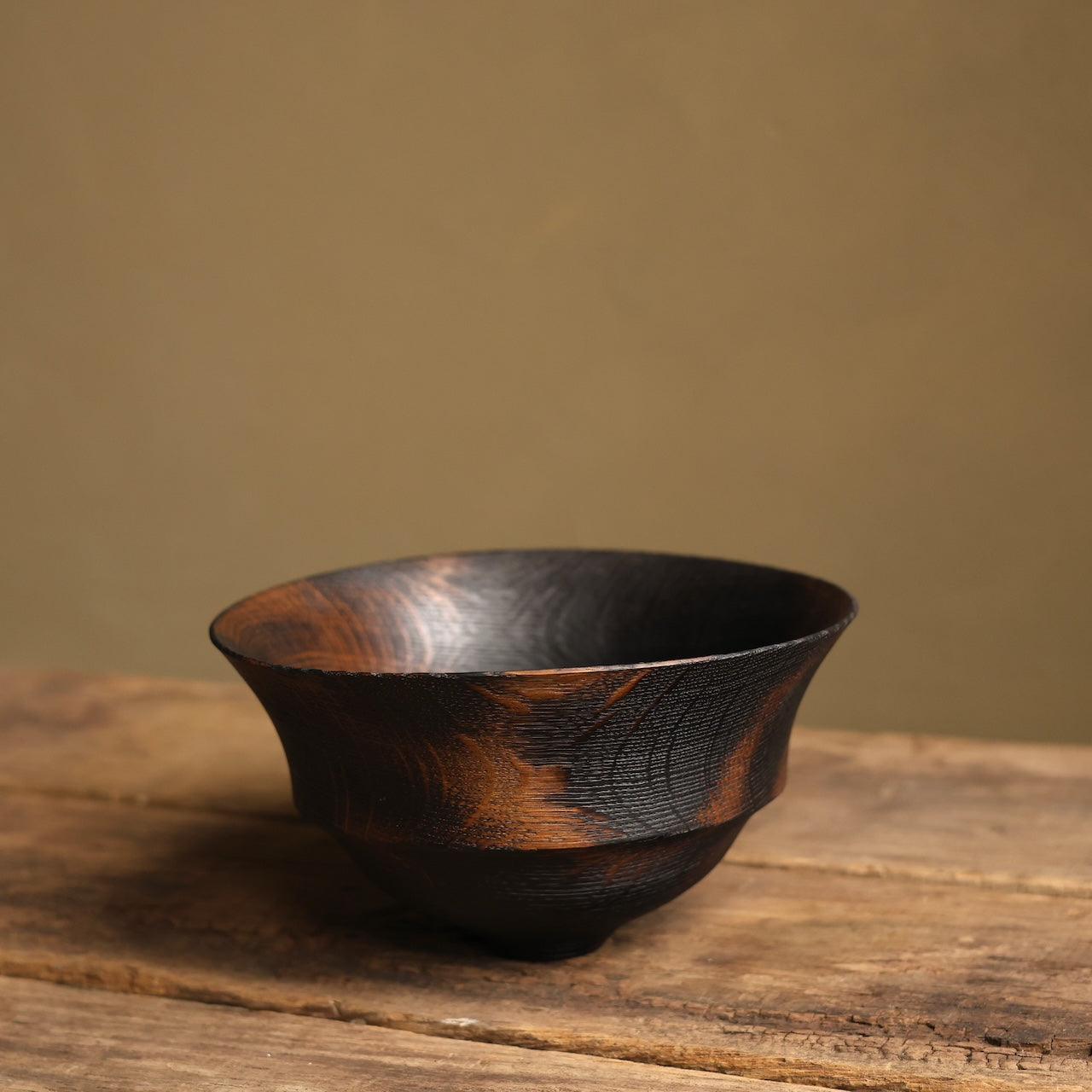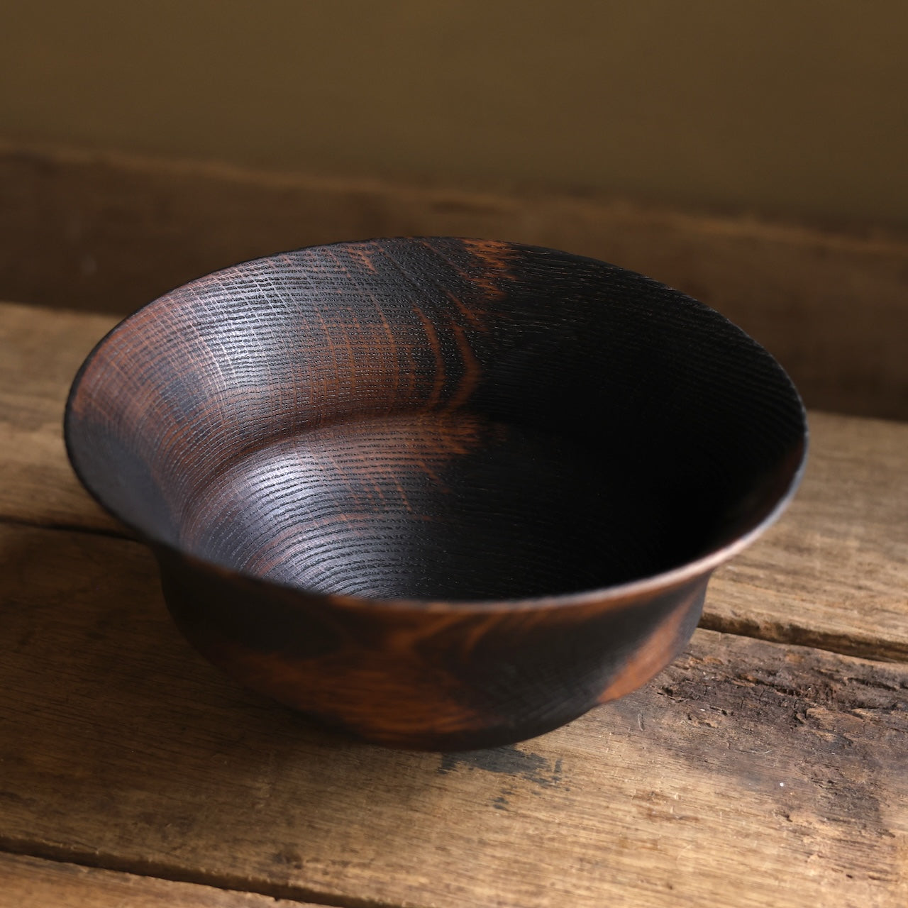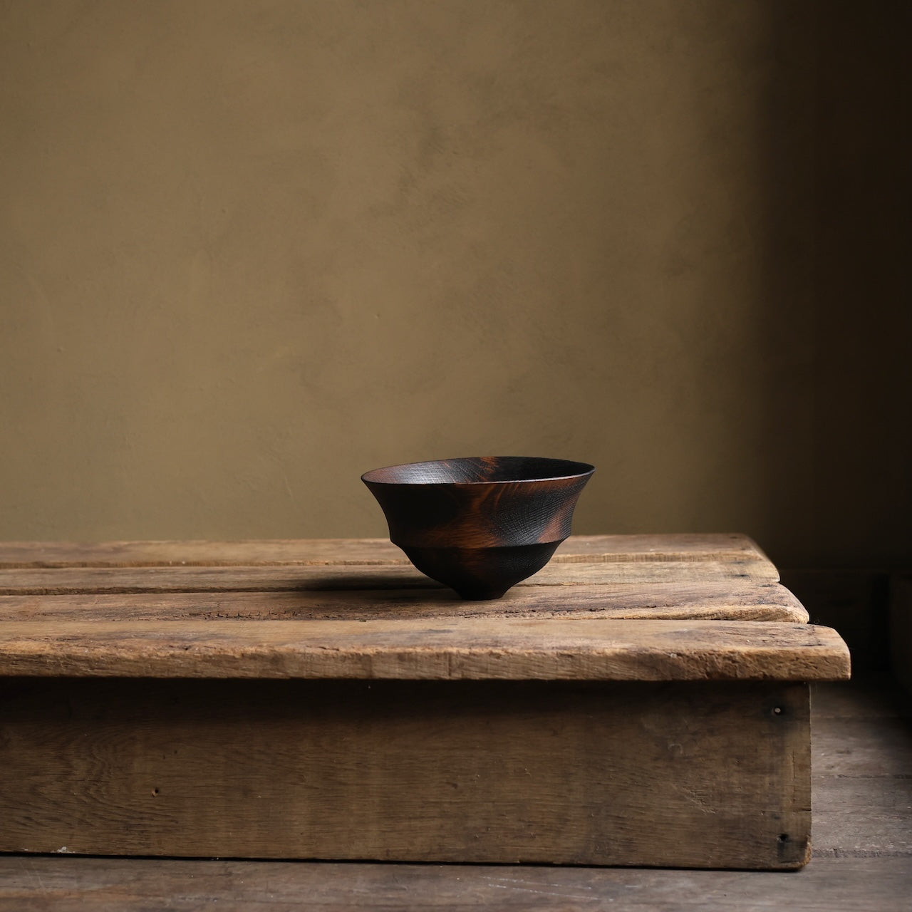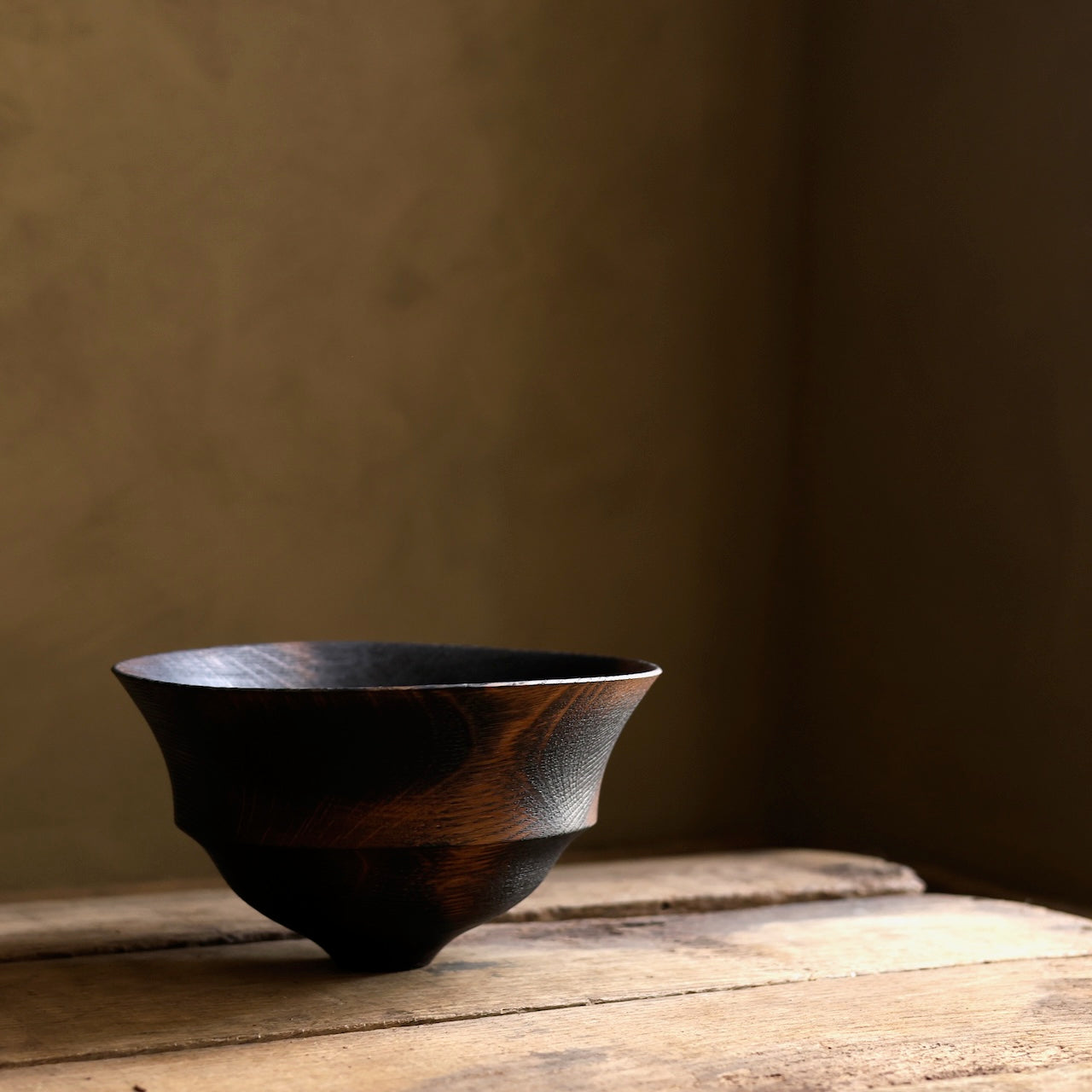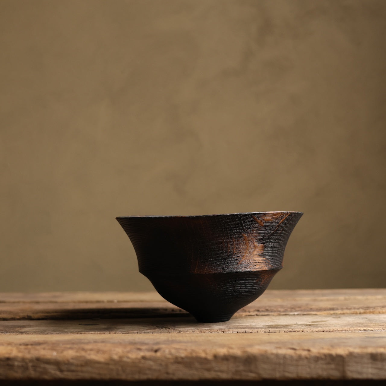 Patinated Oak vessel treated with lime and a touch of fire before coating with danish oil and wax and then burnished with a stiff brush