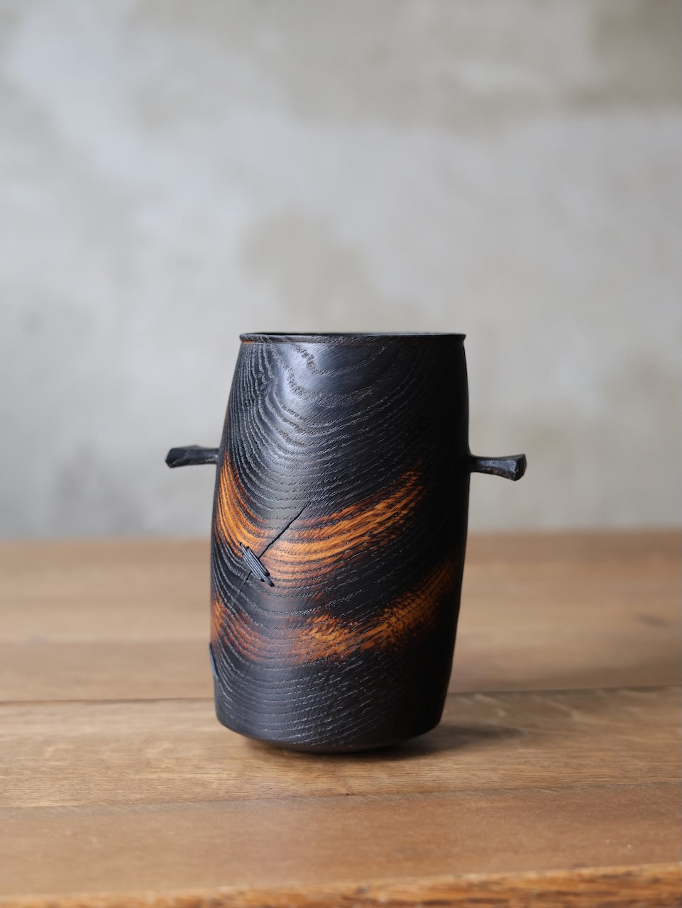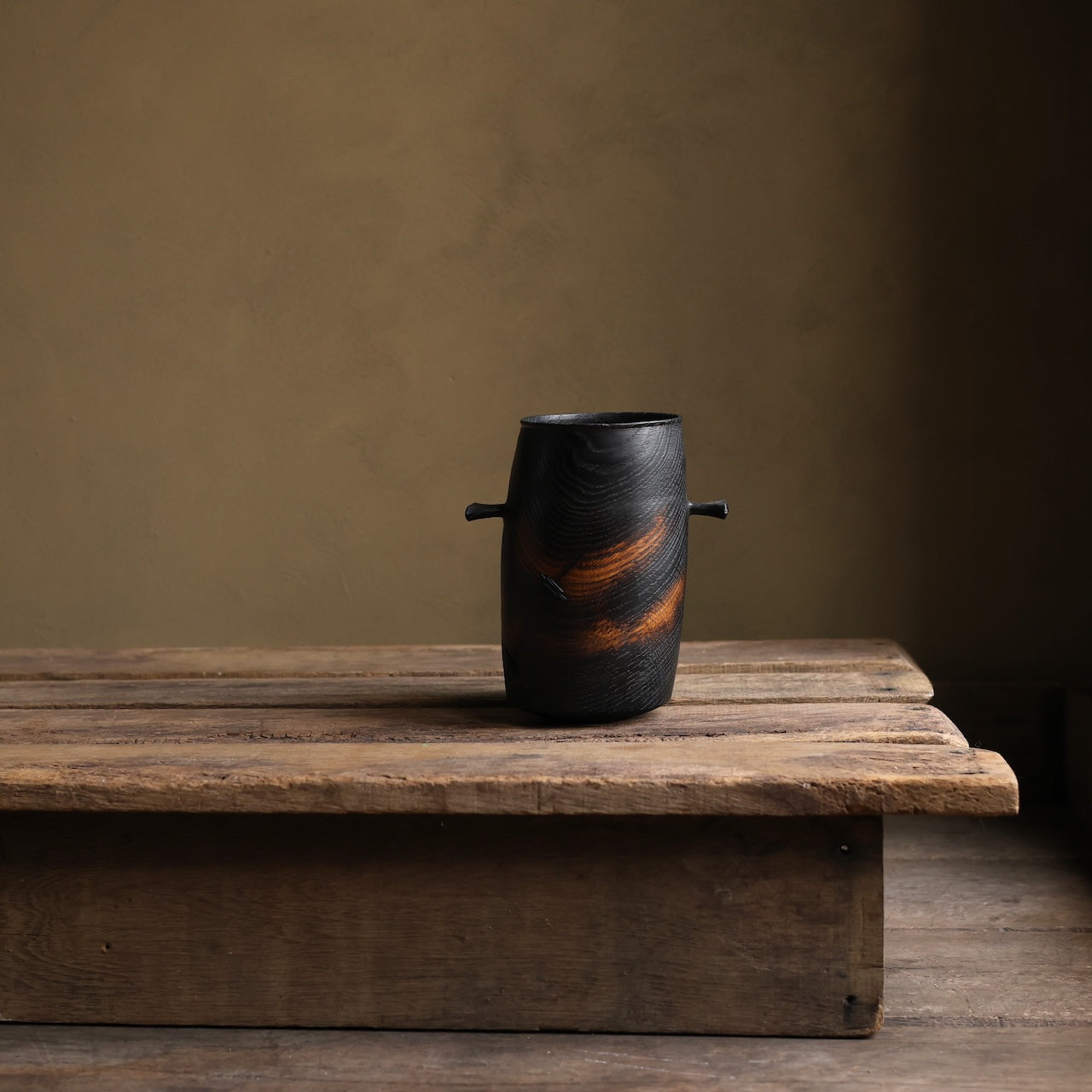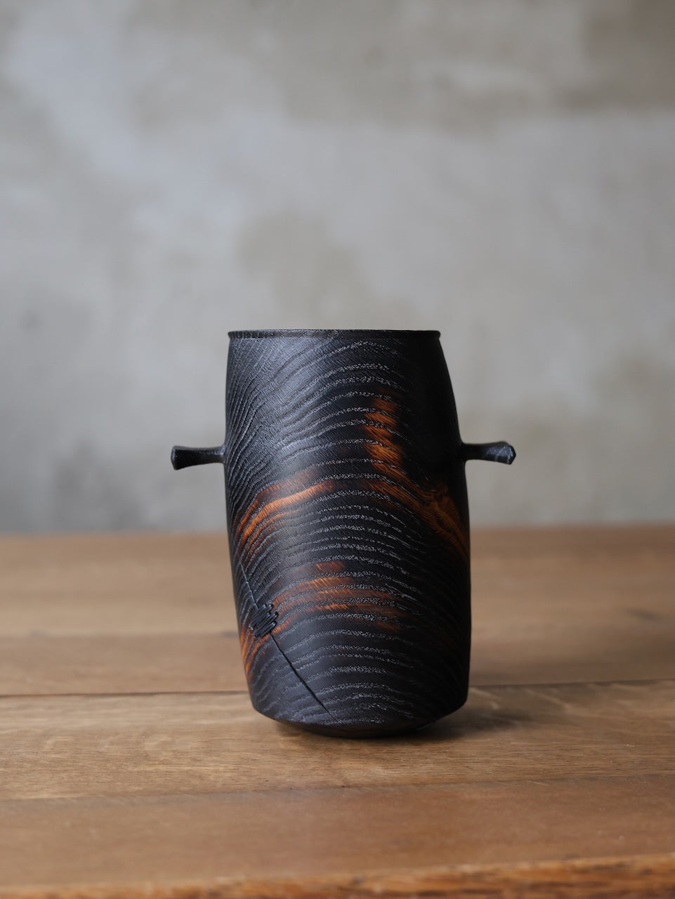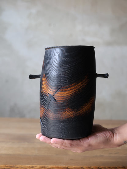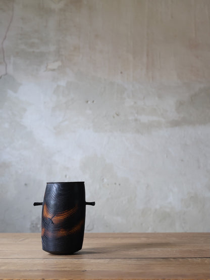 Our Ouse Vessel features subtle shorter tab handles carved from a single section of Oak after turning and a very pared back form that celebrates the natural beauty of the surface.