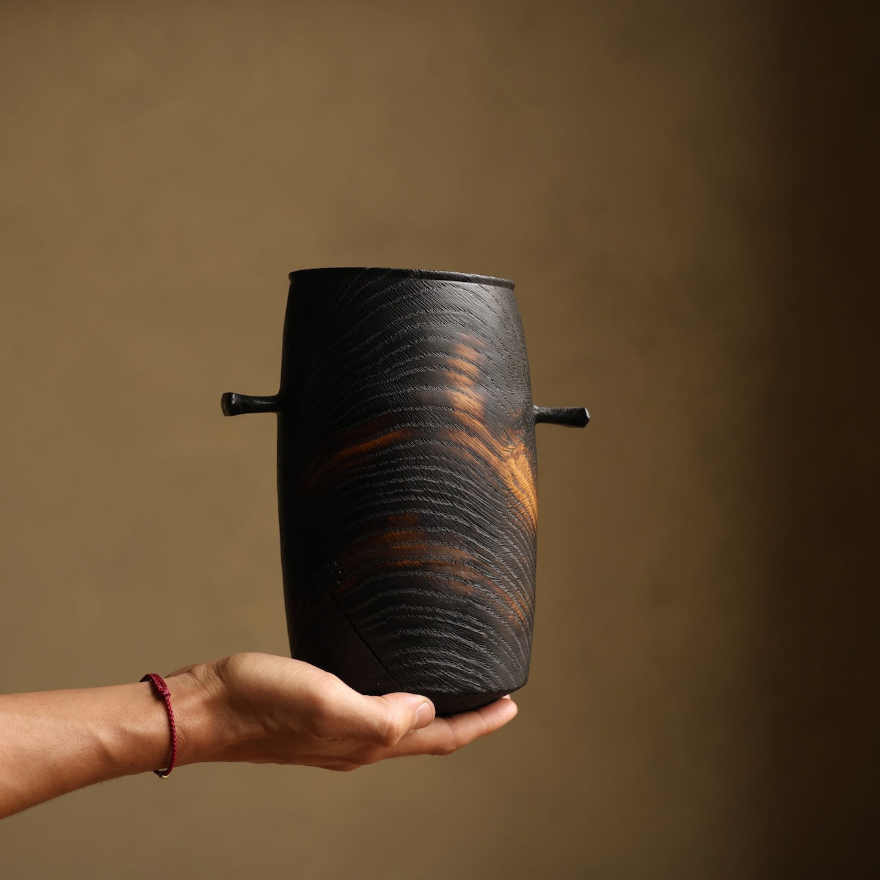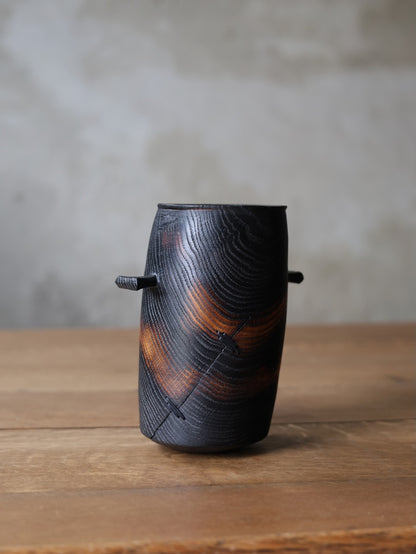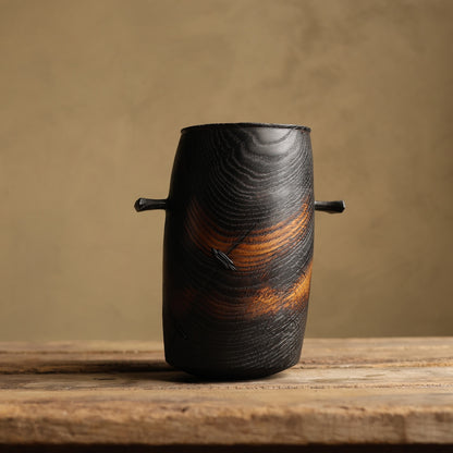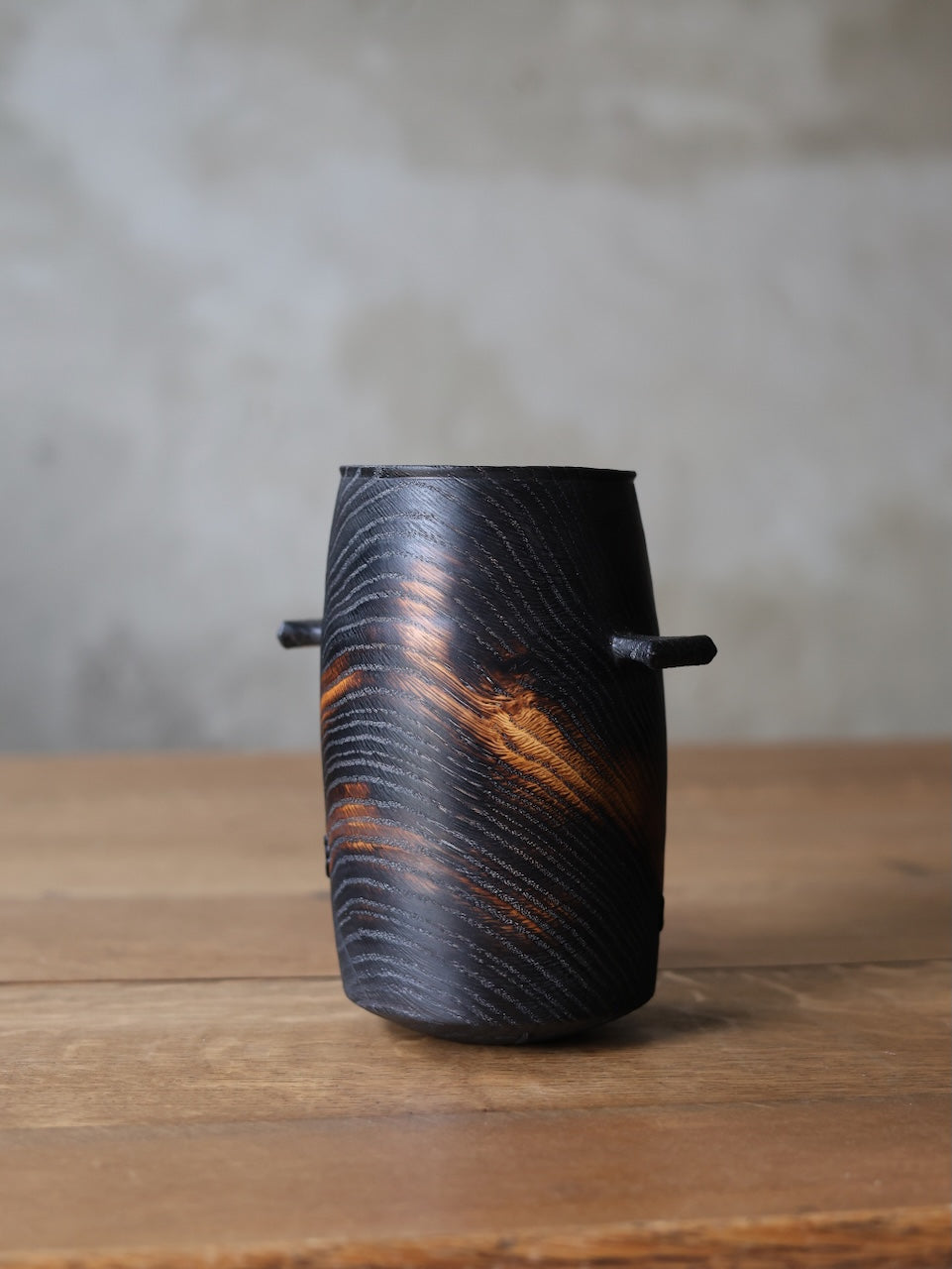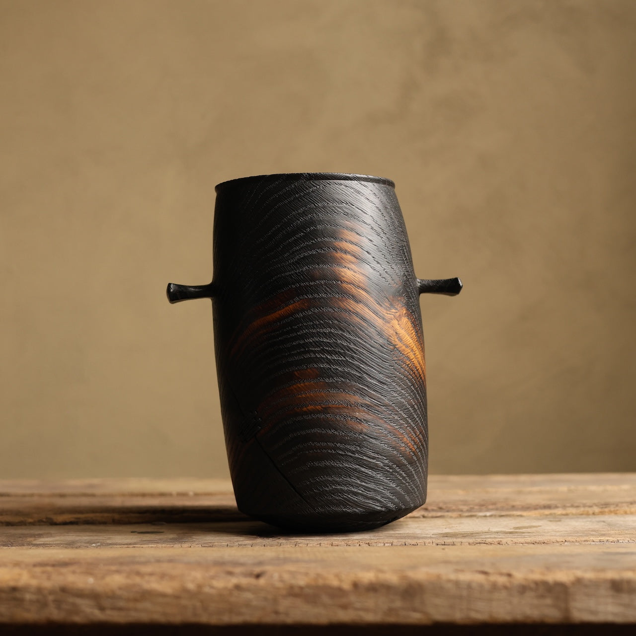 Our Ouse Vessel features subtle shorter tab handles carved from a single section of Oak after turning and a very pared back form that celebrates the natural beauty of the surface.