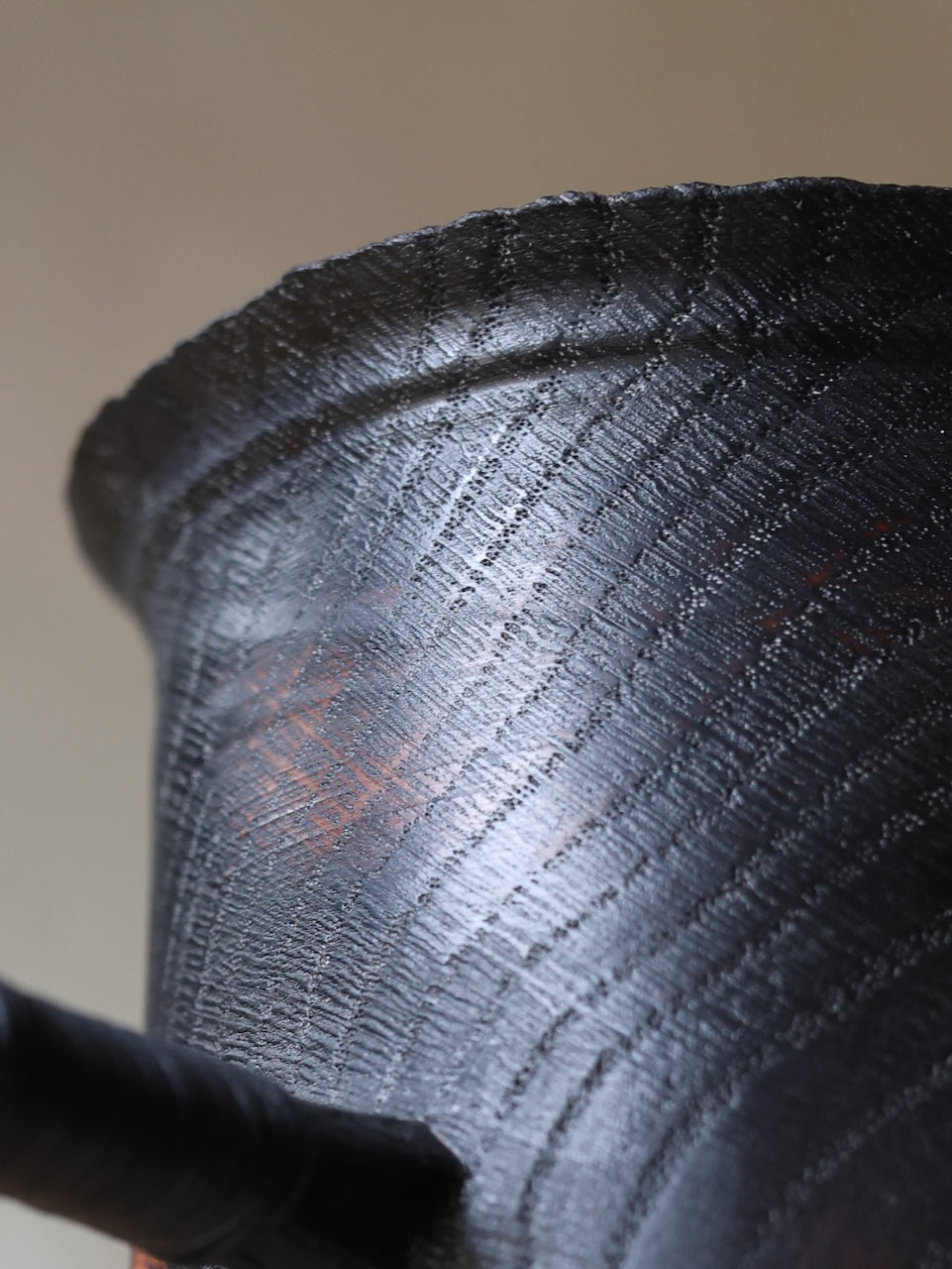 The Knight vessel is named as such because of the archetypal symbology it projects, a sense of proud duty and honourable protection seem to be imbued within its character. Featuring long full integral handles that reach out far from the vessel that are lightly wrapped in natural cord.
